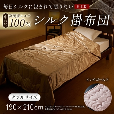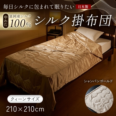 【中わた 富岡産シルク100%】シルク掛布団(セミダブルサイズ)シャンパンゴールド F21E-435
