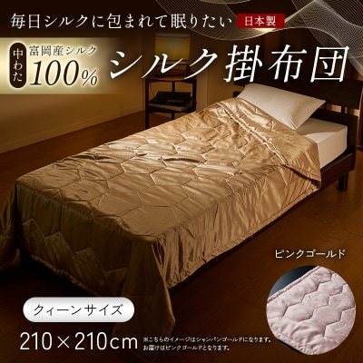 【中わた 富岡産シルク100%】 シルク掛布団(ダブルサイズ) ピンクゴールド F21E-439