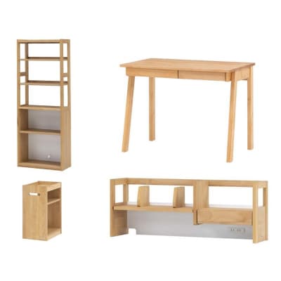 堀田木工所の学習デスク「カルロ 90ラック」は、A4サイズがぴったり収まる奥行です。収納するものに合わせて棚板の高さを変えられます。 ※こちらは完成品でのお届けとなります。