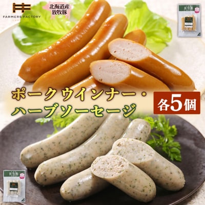 【定期便:6回】北海道産放牧豚 無添加ポークウインナー・粗挽きウインナー ×各10【120070】