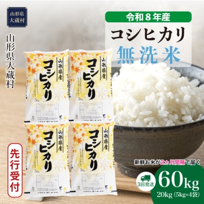 <8年産米先行受付>令和8年11月上旬発送 雪若丸【無洗米】60kg定期便(3回定期便)大蔵村