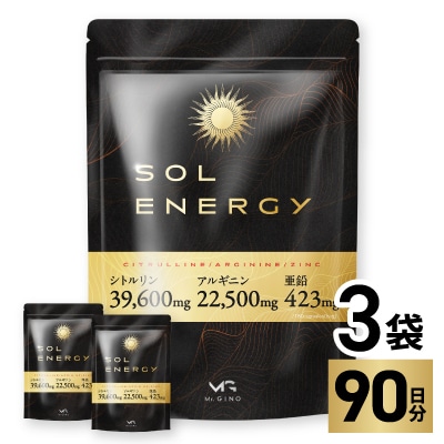 ソルエナジーはL-シトルリン39,600mg L-アルギニン22,500mg 亜鉛420mg 厳選全16成分の圧倒的配合量を実現したエナジーサプリメント。※1袋あたり
