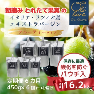 【毎月定期便】朝摘み ラツィオ産エキストラバージンオリーブオイル 450g×3個全6回