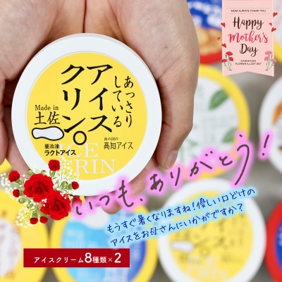 【母の日にお届け】高知アイスの「アイスクリーム」 16個セット(8種類×2個)