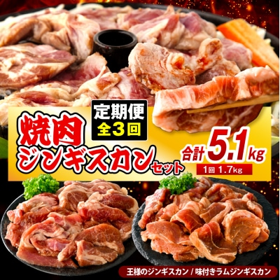 【定期便 3か月】焼肉ジンギスカンセット【王様のジンギスカン1袋+味付きラムジンギスカン2袋】