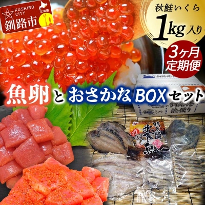 【3か月連続定期便】いくら1kg たらこ切子と明太子切子 おさかなBOX(3) F4F-8735