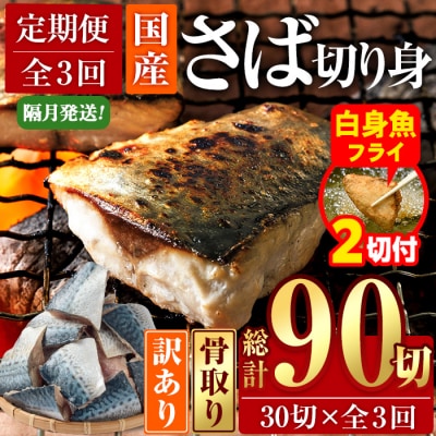 【フライ付】<定期便・全3回 (隔月)>訳あり・さば切り身 (総計約3.6kg・40g前後×90切)