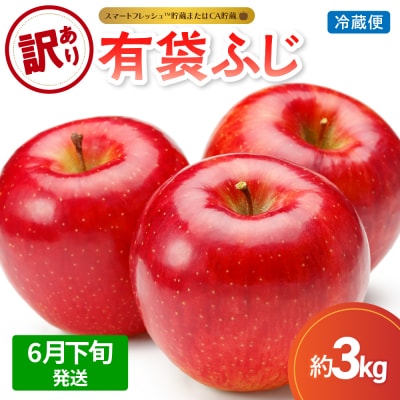 【2026年6月下旬発送】【訳あり】りんご3kg有袋ふじ スマフレTM貯蔵またはCA貯蔵・クール便