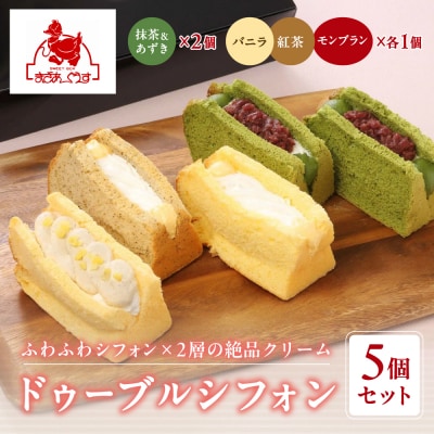 【まざあぐうす】ドゥーブルシフォン5個セット(抹茶&あずき2個、バニラ・紅茶・モンブラン各1個)