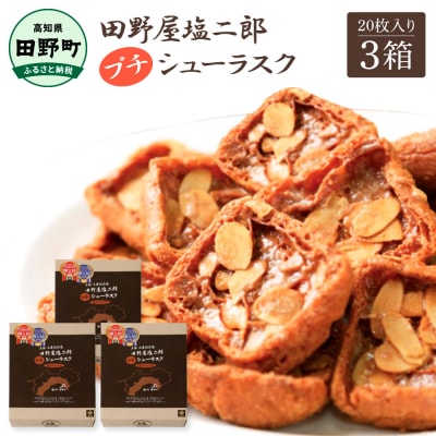 【四国一小さなまち】★田野屋塩二郎完全天日塩★ プチシューラスク(20枚入) 3箱