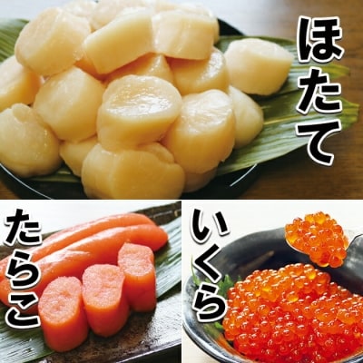 【さとふる限定】2代目漁師が厳選した無添加お刺身帆立・特製いくら醤油漬け・甘口たらこセット