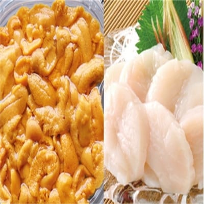 エゾバフンウニ塩水、刺身ホタテ貝柱[11月下旬以降発送] D-53028