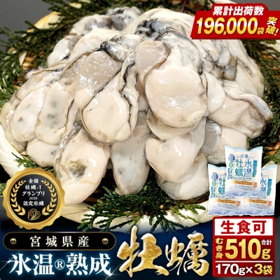 宮城県産 かき 氷温熟成 牡蠣 生食用(冷凍)170g×3袋 510g むき身 まるたか水産 石巻市