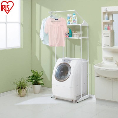 ランドリーラック 伸縮 棚付き アイリスオーヤマ[53753036]