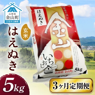 【毎月定期便】庄内産無洗米はえぬき5キロ毎月お届け(3ケ月) 全3回