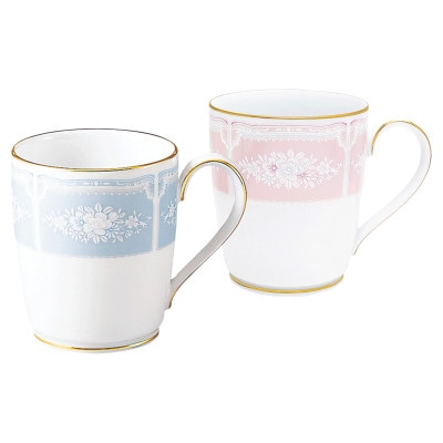 ノリタケ【レースウッドゴールド】マグカップペア(ブルー・ピンク)