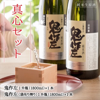 【3月発送】『真心』 1升瓶 2本セット ~「鬼作左」搾り方2種~ [B-1301]