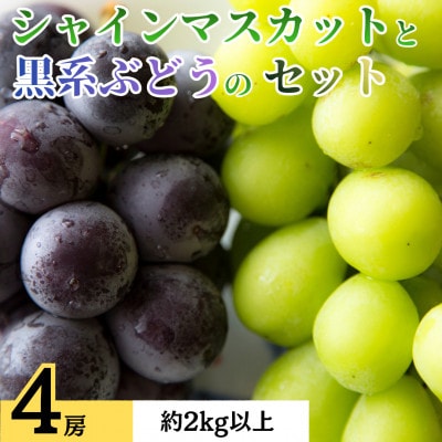 シャインマスカットと黒系ぶどう(藤稔・ピオーネ等)のセット 4房 約2.0kg以上