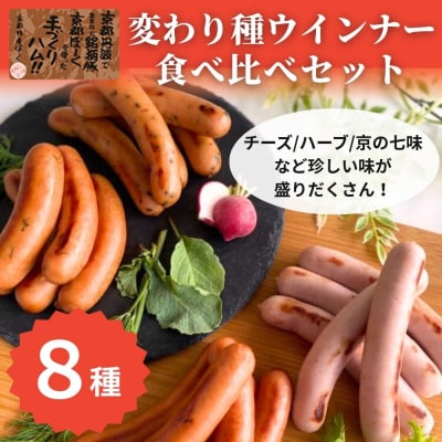 【京都特産ぽーく】変わり種ウインナー 8種 食べ比べセット|ハーブ チーズ 京の七味 ほうれん草 他