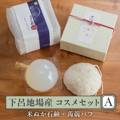 下呂地場産コスメセットA(米ぬか石鹸、蒟蒻パフ)【奥田又右衛門膏本舗】【1-11】