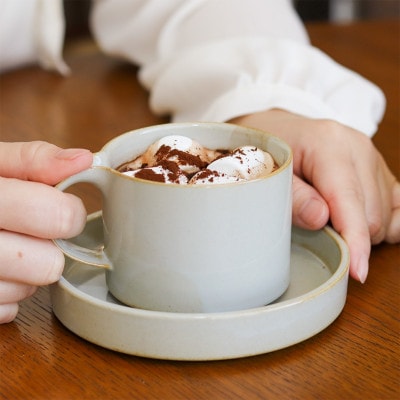渋めに焼成しながら生まれる淡青の盃。光沢感が心を惹きつけます。