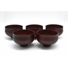 紀州漆器 伝統工芸士 谷岡公美子作 木製くりぬきコマ型汁椀 根来塗