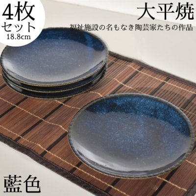 丸皿〔藍色〕4枚セット〔大平焼〕(158M.)