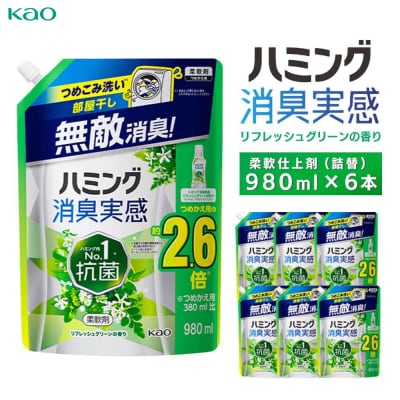 花王 ハミング消臭実感リフレッシュグリーン詰替980ml×6本【柔軟仕上剤】