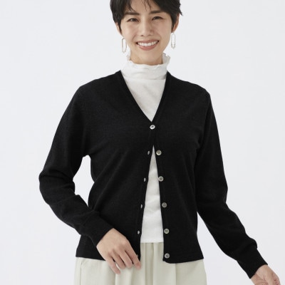 日本製 カシミヤ100% レディース Vカーディガン ブラック Mサイズ 90805