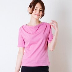 レディース 5分袖 ドレープネック カットソー(LLサイズ)