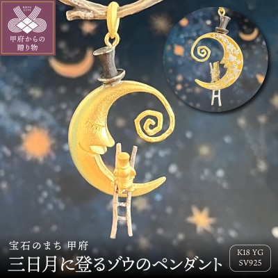 18金/SV三日月に登るゾウのペンダント(9758)