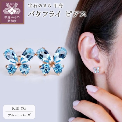 【ジュエリー】K10 イエローゴールド ブルートパーズ バタフライ ピアス 保証書付 SE-2953