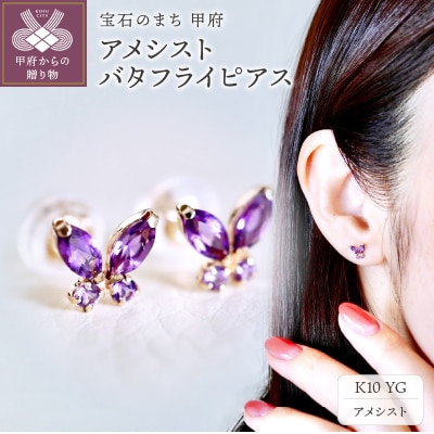 【ジュエリー】K10 イエローゴールド アメシスト バタフライ 蝶 ピアス 保証書付 SE-2913
