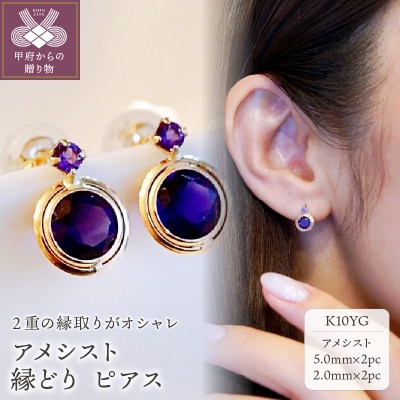 【ジュエリー】K10 イエローゴールド アメシスト 縁どり ピアス 保証書付 SE-2861