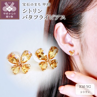【ジュエリー】K10 イエローゴールド シトリン バタフライ 蝶 ピアス 保証書付 SE-2953