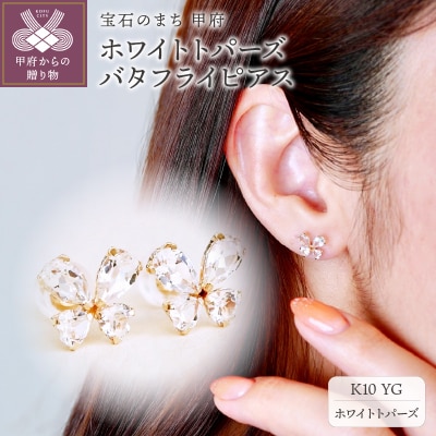 【ジュエリー】K10 イエローゴールド ホワイトトパーズ バタフライ 蝶 ピアス SE-2913