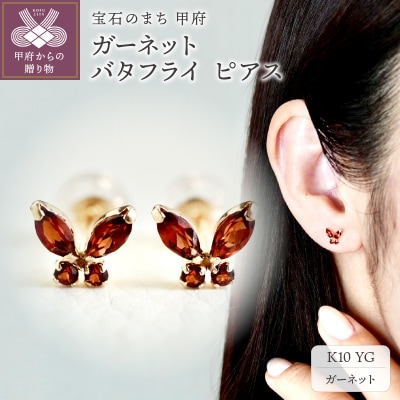 【ジュエリー】K10 イエローゴールド ガーネット バタフライ 蝶 ピアス 保証書付 SE-2953