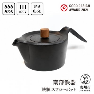 南部鉄器 鉄瓶 スワローポット 0.6L IH調理器 伝統工芸品 [AK022]