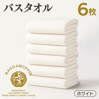 高級泉州タオル ラガマフィン バスタオル ホワイト 6枚 099H4135