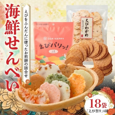 【工場直送】【海鮮せんべい】えびせん家族の「えび祭り」4種18袋 H011-145