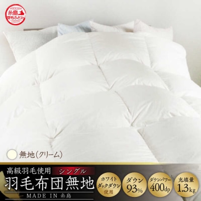 【年内発送】【糸島羽毛ふとん】【高級ダウン使用】無地ダウン93%【シングル】[AYM016]