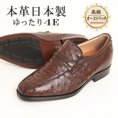 オーストリッチ革スワローモカスリッポン 幅広4Eワイドな革靴 No.1267 ブラウン 24cm