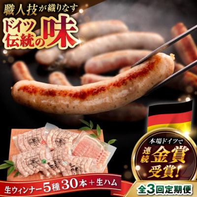 【全3回定期便】 生ウインナー 5種30本 + 生ハム 糸島/糸島手造りハム [AAC010]