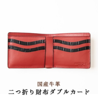 HEDGE クリアに輝くクロコ型押し牛革を使用した二つ折り財布[ダブルカードタイプ]たつの市産牛革