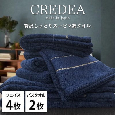 【フェイス4枚・バス2枚】しなやかオーガニックコットンタオルセット(ナナイロ)F4B2-BL