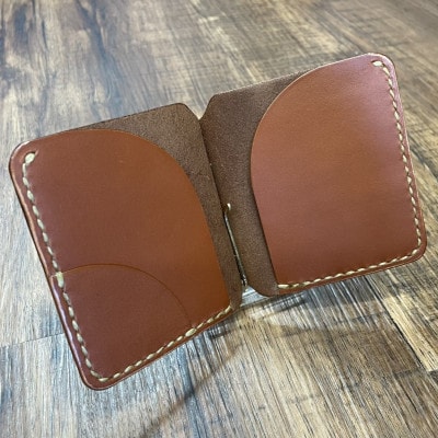 イタリアンレザー製マネークリップ 職人手作りの本革財布・プレゼントにも最適 ブラウン 茶色