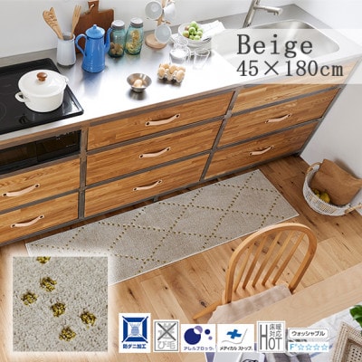【45×180cm】洗える おしゃれなキッチンマット ラグ(ポント) ベージュ