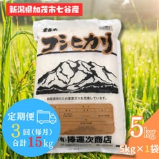 【毎月定期便】新潟県加茂市七谷産コシヒカリ 精米15kg (5kg×3袋)全3回