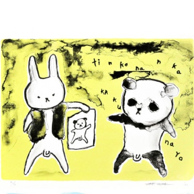 田島享中己半生を版画にした作品LIFE 第一段?となります。シュールでくすっと笑いのある作品です