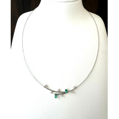 Pt850 エメラルド ダイヤモンド ネックレス(カーブタイプ)